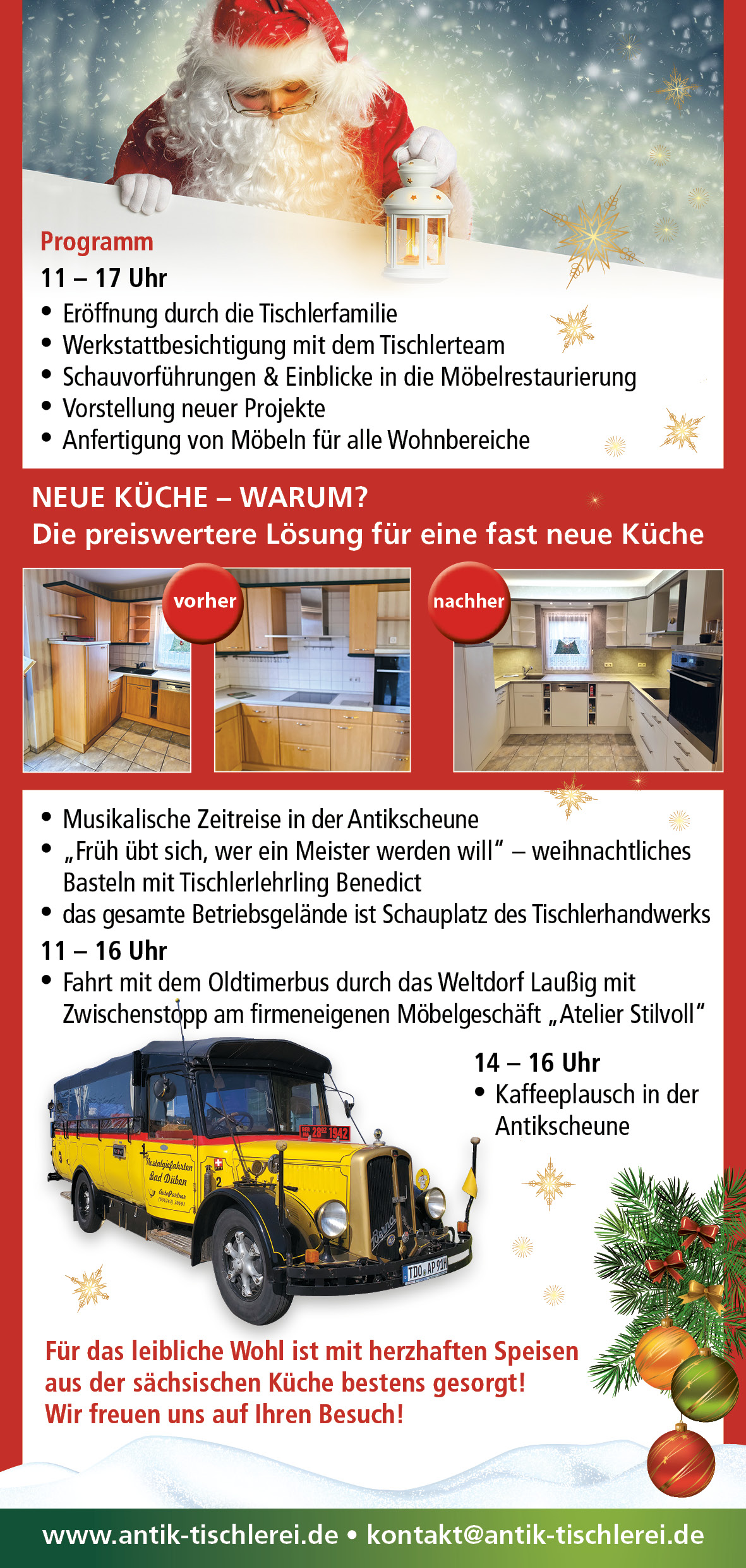 Am 09. November 2025 können Sie uns von 11 – 17 Uhr besuchen. Nehmen Sie an einer Werkstattführung teil, erkunden Sie, wie sorgsam wir Möbel restaurieren oder lassen Sie sich einfach inspirieren.